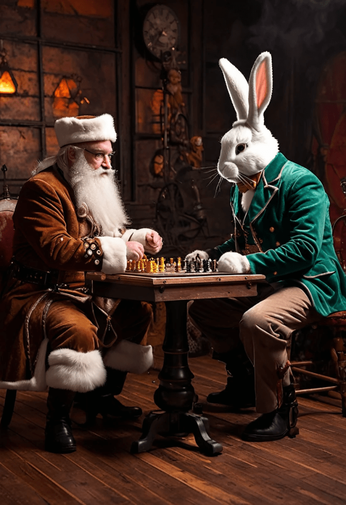 I say, “So what did you tell your kids about Santa? You know, the list the old fat man makes that he checks twice?”